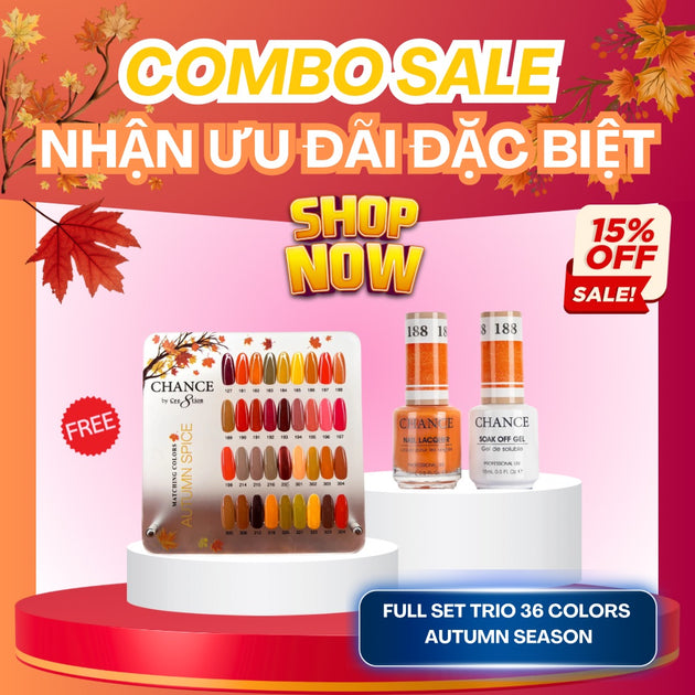 [Combo Sale] Chance Gel/Lacquer & Dip Powder Matching Trio Full 36 Colors Autumn (Free 2 Color Chart)