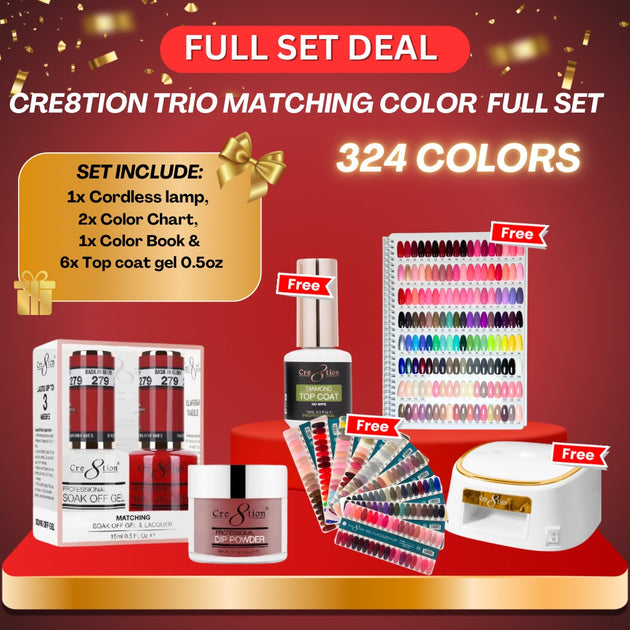Cre8tion Trio Matching colors - Full set 324 colors ( Free 1x Cre8tion Cordless lamp, 1x Color Charts, 1x Color Book & 6x Top Coat Gel 0.5oz)