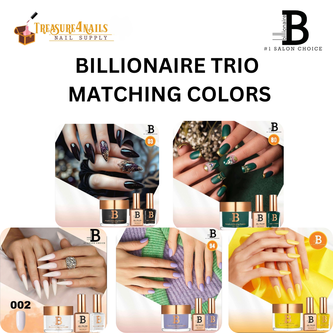 Experience the ultimate convenience with the Billionaire Trio Matching set, designed to elevate your nail styling game. This comprehensive set includes: