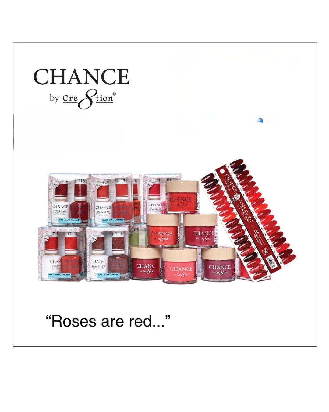 Indulge in the "Roses Are Red..." Collection, featuring 36 mesmerizing shades of Chance Matching Color Gel & Nail Lacquer. Elevate your nail game with this exquisite set, complete with two color charts for easy selection, all at a pocket-friendly price.