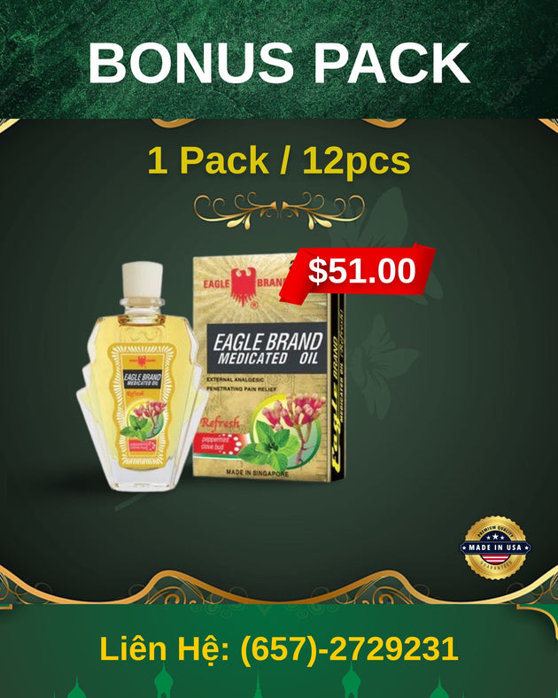 Dau Xanh Eagle Brand Aromatic Medicated Oil 0.8oz 24ml 12 pcs/pack - No Free Gift