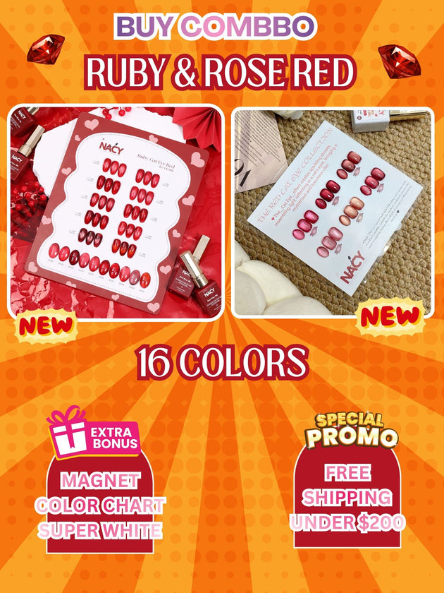 Combo Set Nacy Cat Eye Gel Ruby 10 Colors + Rose Red 6 Colors - Free Color Chart Display + Magnets