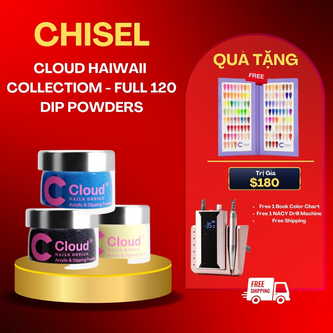 Chisel CLOUD HAWAII COLLECTION - Full Set Dip Powder 2oz 120 Colors W/ 1 Color Book & 1 Drill Machine Free