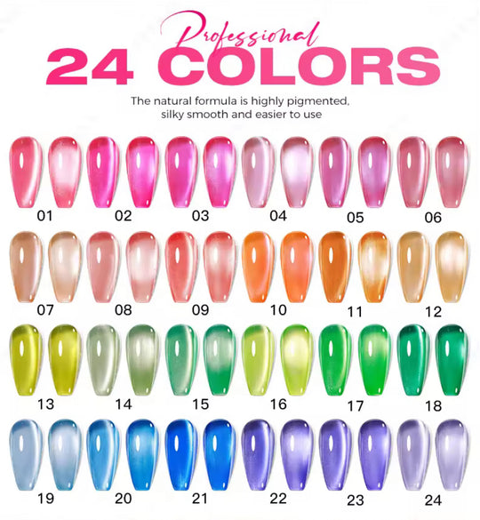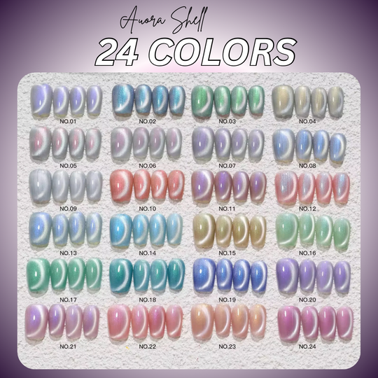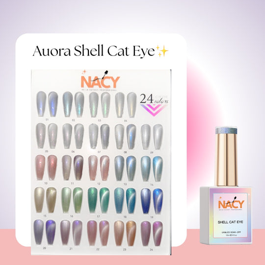 Nacy Shell Auora Cat Eye Set 24 Colors / Free color chart Book display