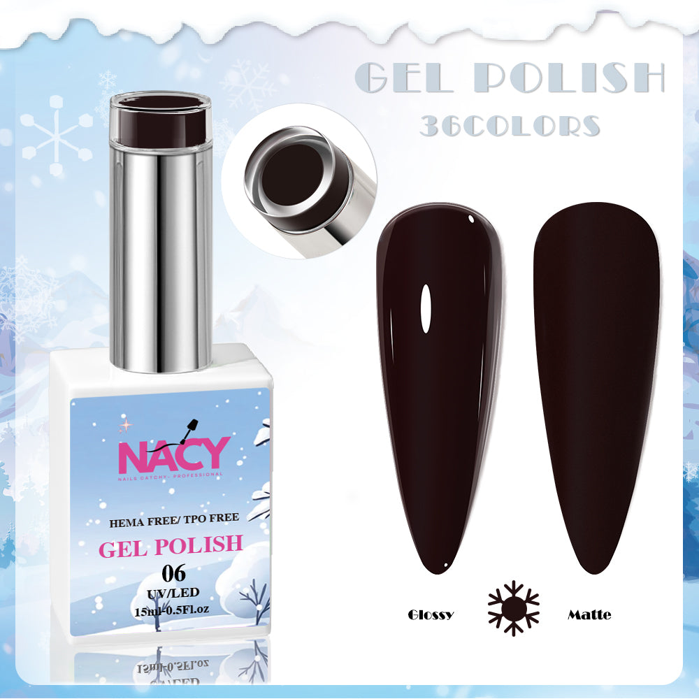 Nacy Winter Gel Color is a professional grade nail product that comes in a 0.5oz bottle. It is HEMA / TPO free, ensuring a safe and healthy application for your nails. With a variety of 36 colors in the set, you can create endless winter-inspired nail designs.