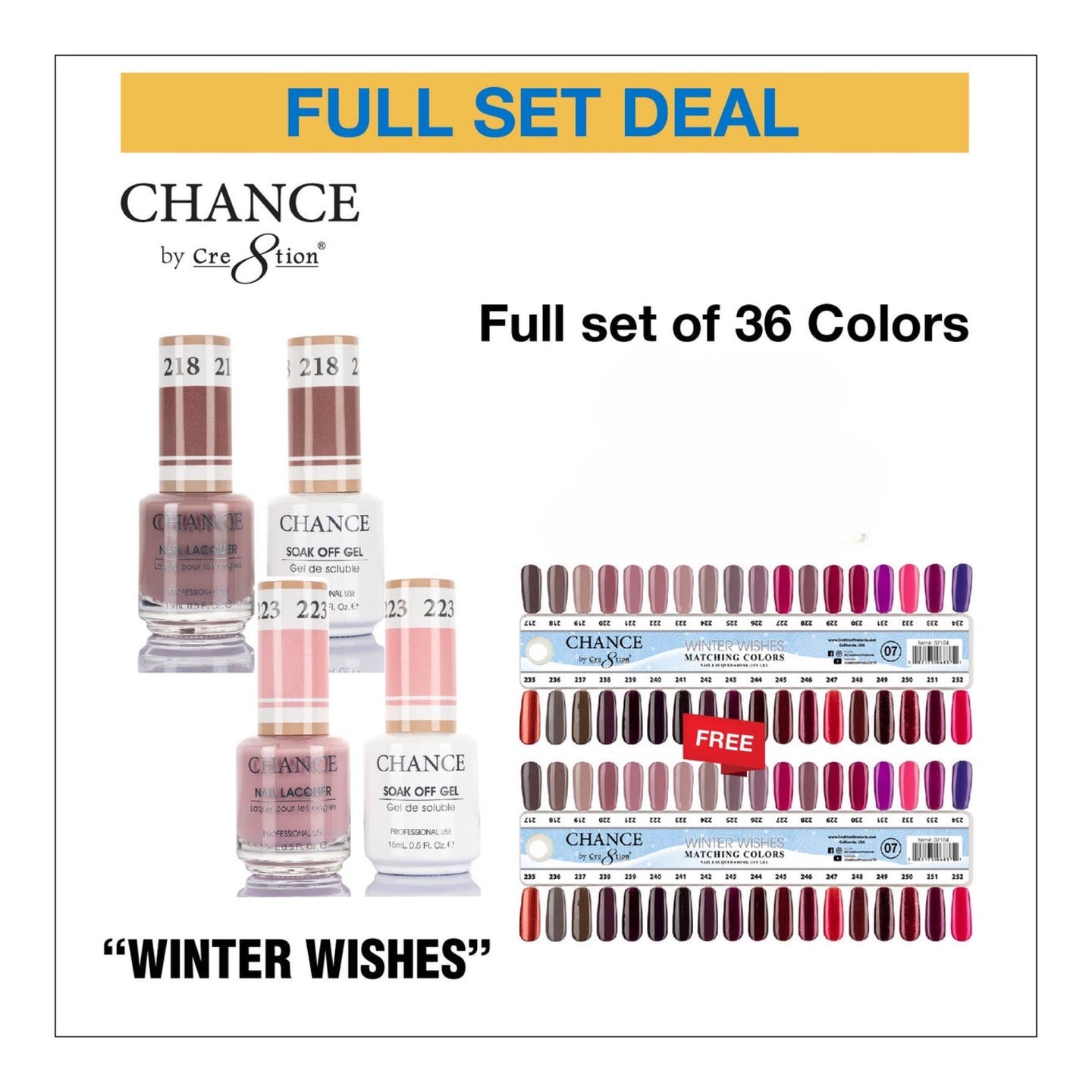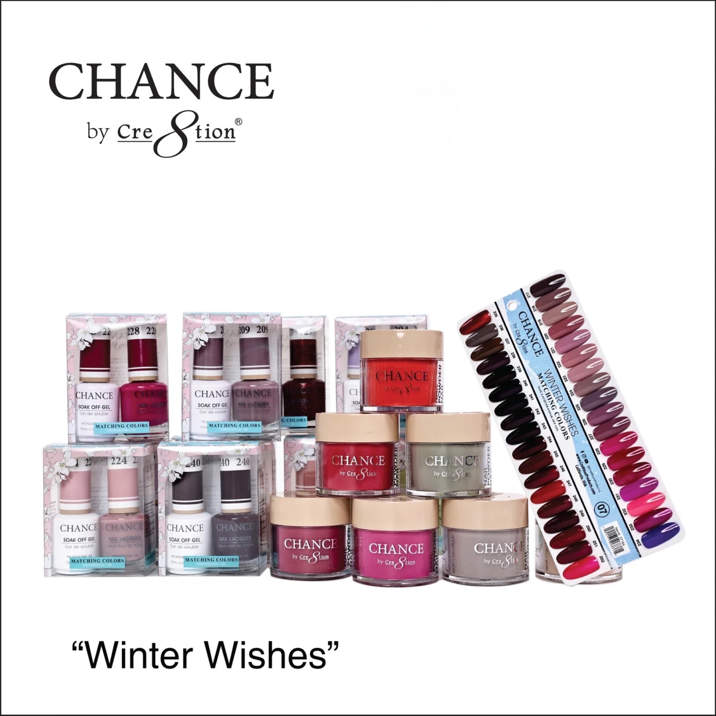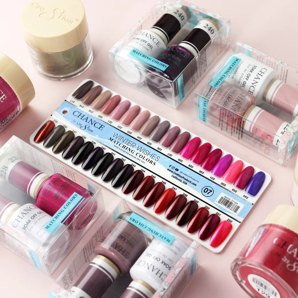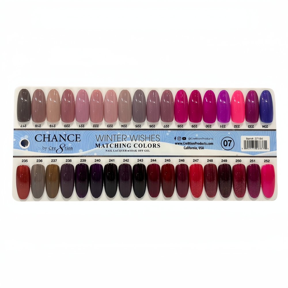 Elevate your nail game and indulge in the luxury of choice with the Chance Gel/Lacquer Trio 3in1 Full Set - 36 Colors Winter Collection 07.