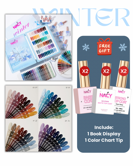 Regular price $289.80Nacy Set Winter Gel 36 Colors - HEMA TPO free / Free Base,Top, Matte & 1 Color Display Book & SwatchesDiscover the ultimate set to elevate your winter gel nail game with Nacy Set Winter Gel... -