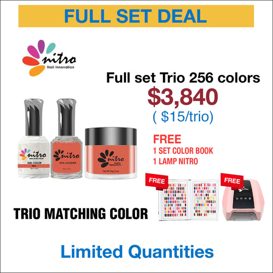 No reviewsRegular price $3,840.00Nitro Trio Matching colors - Full Set 256 Colors w/ 1 set Color Book & 1 Nitro Cordless Rechargeable Lamp -