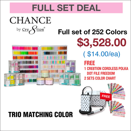 Chance Trio Matching color - Full set 252 colors w/ 2 sets Color Chart & 1 Cre8tion Polka Dot Cordless File Freedom