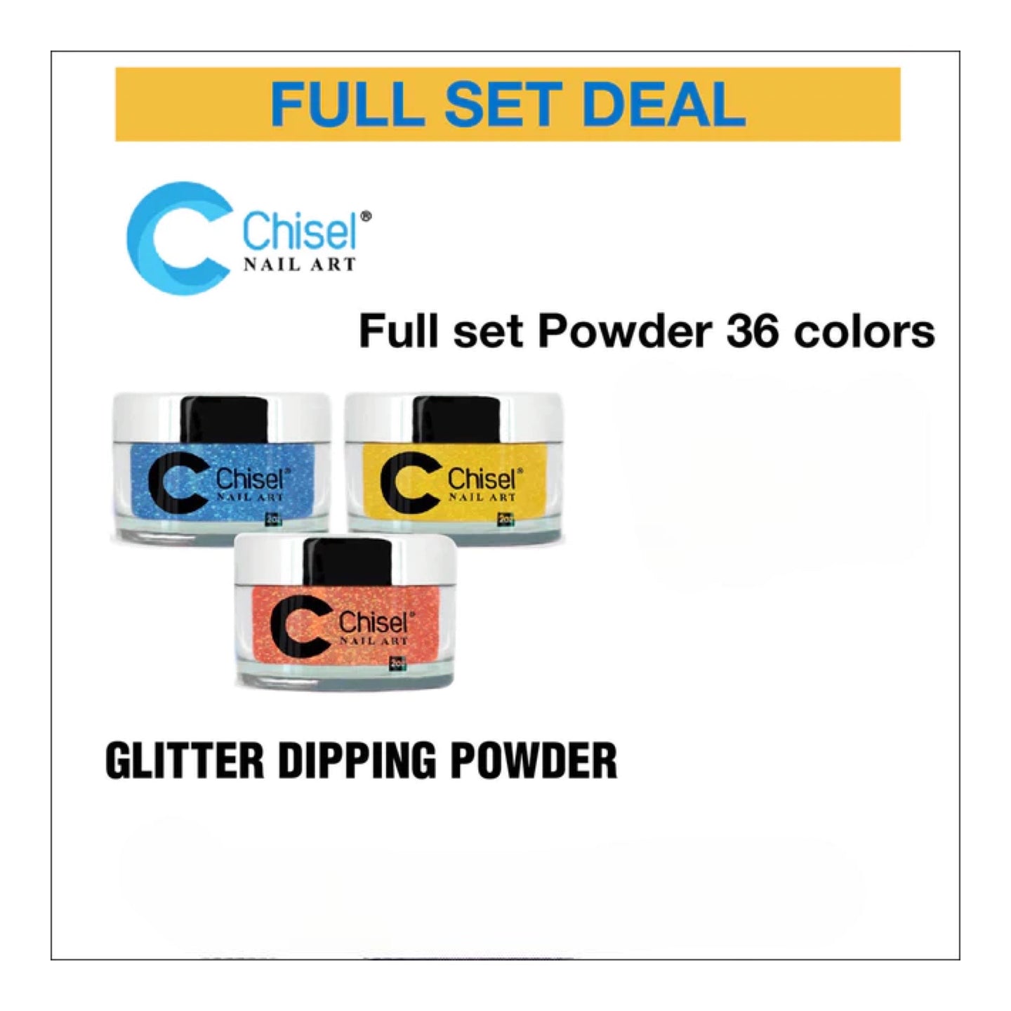-10%Chisel Full Set - Glitter Dipping Powder 2oz - 36 Colors #GL01 - #GL36