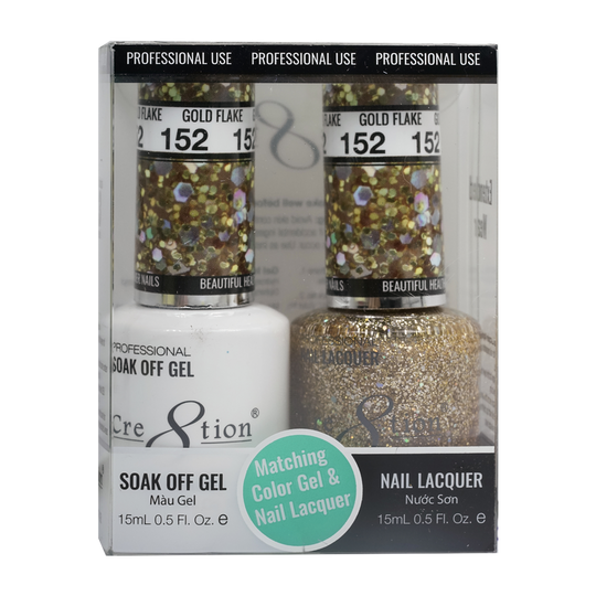 Cre8tion Matching Color Gel & Nail Lacquer 152 Gold Flake