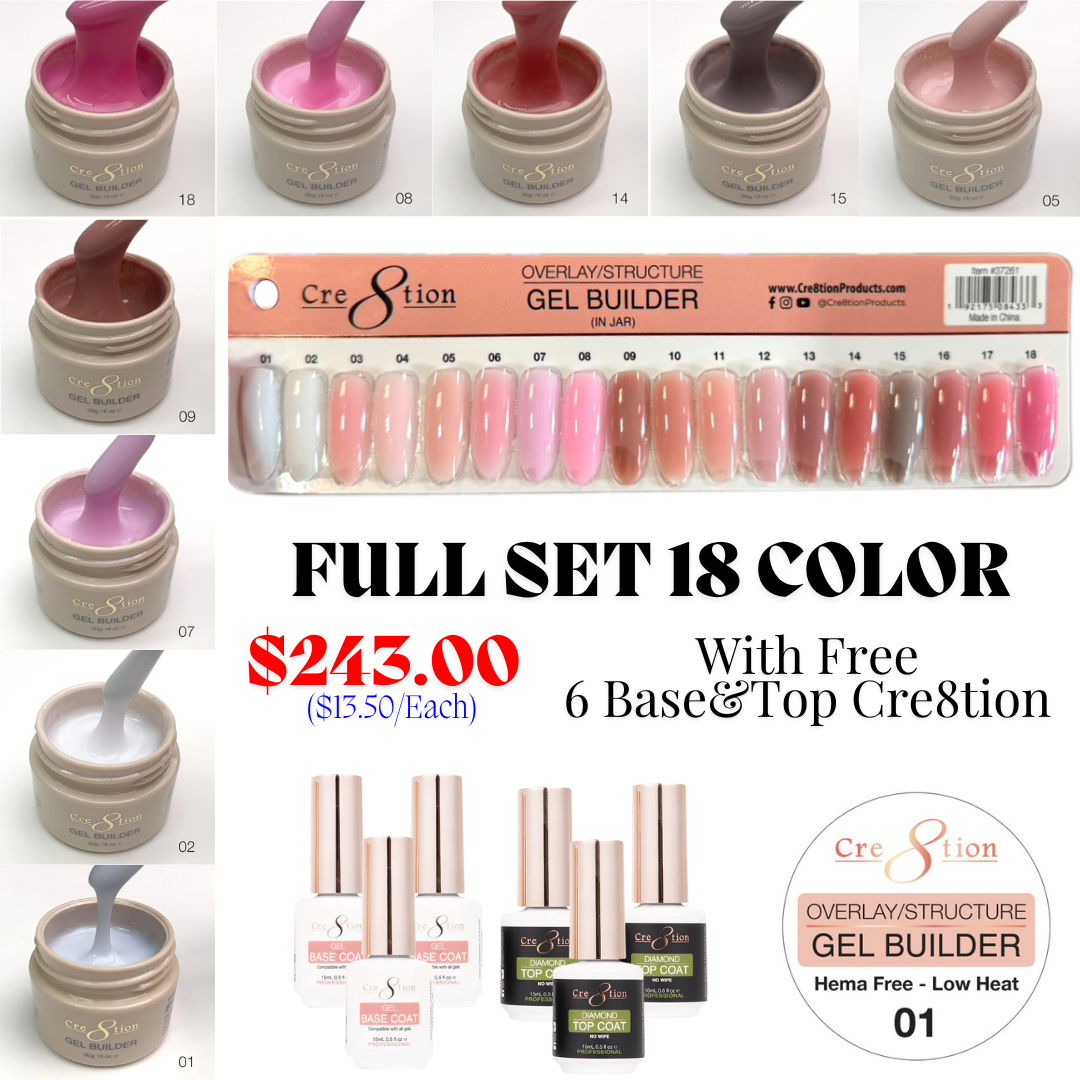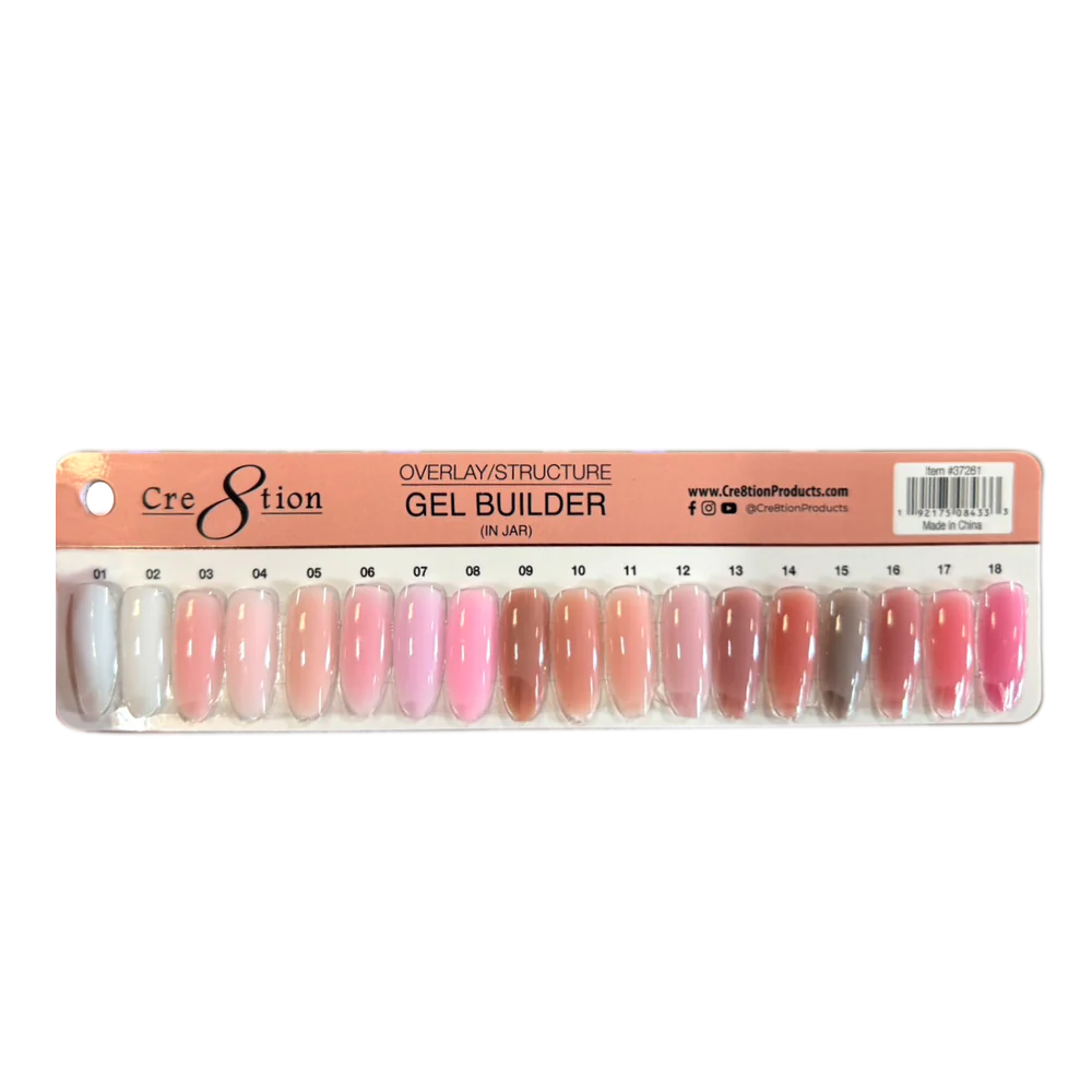 Cre8tion Overlay/Builder Gel in Jar 1oz - Hema Free Full Set 18 Color