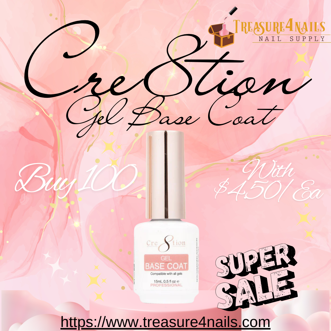 -18%Cre8tion - Soak Off Gel - Base Coat 0.5oz - Buy 100 With $4.50/Ea