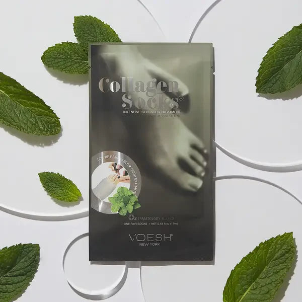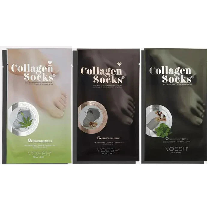 Slip your feet into our Collagen Socks, now with a new and improved 100% vegan formula. Infused with our NEW vegan collagen, argan oil, and shea butter, these socks deliver an intensive foot treatment in just 15 minutes or less. Nourishing and moisturizing, these foot masks are the perfect remedy for dry skin, thanks to their extreme hydrating properties. With the convenient, patented design, they’re a great addition to any pedicure. Simply tear off the toe tips along the perforated edges for an all-in-one pedicure treatment.