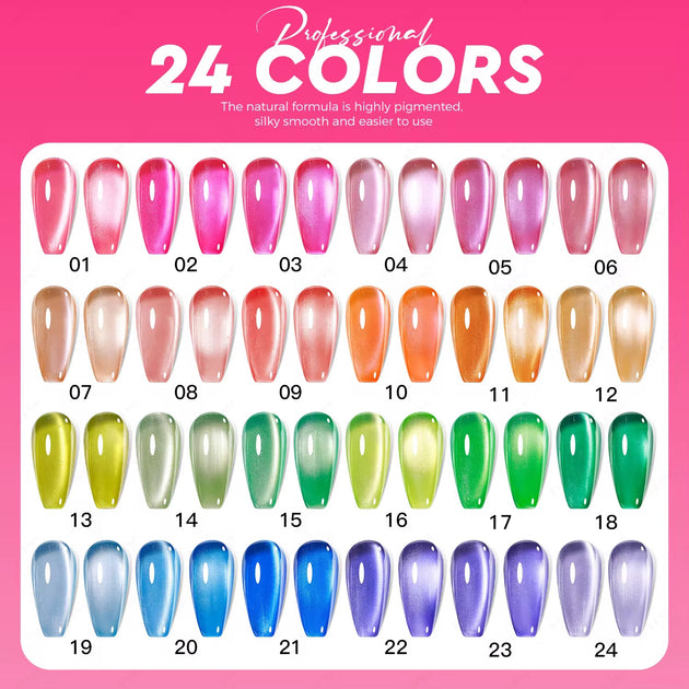 Nacy Shell Auora Cat Eye Set 24 Colors / Free color chart Book display