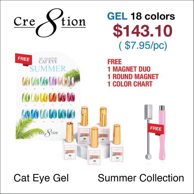 Cre8tion Cat Eye Gel 0.5oz - Summer Collection - 18 colors (#37-48 & #139-144)