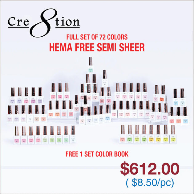 Cre8tion Hema Free SEMI-SHEER Collection 0.5oz - Full Set 72 Colors WITH Color Book