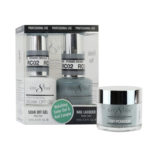 No reviewsRegular price $9.95Cre8tion Trio Rustic Collection included: Cre8tion Dipping Powder Rustic Collection RC02 Dynamic Emerald 2 oz Cre8tion Gel - Lacquer Rustic Collection RC02 Dynamic Emerald 0.5 oz -