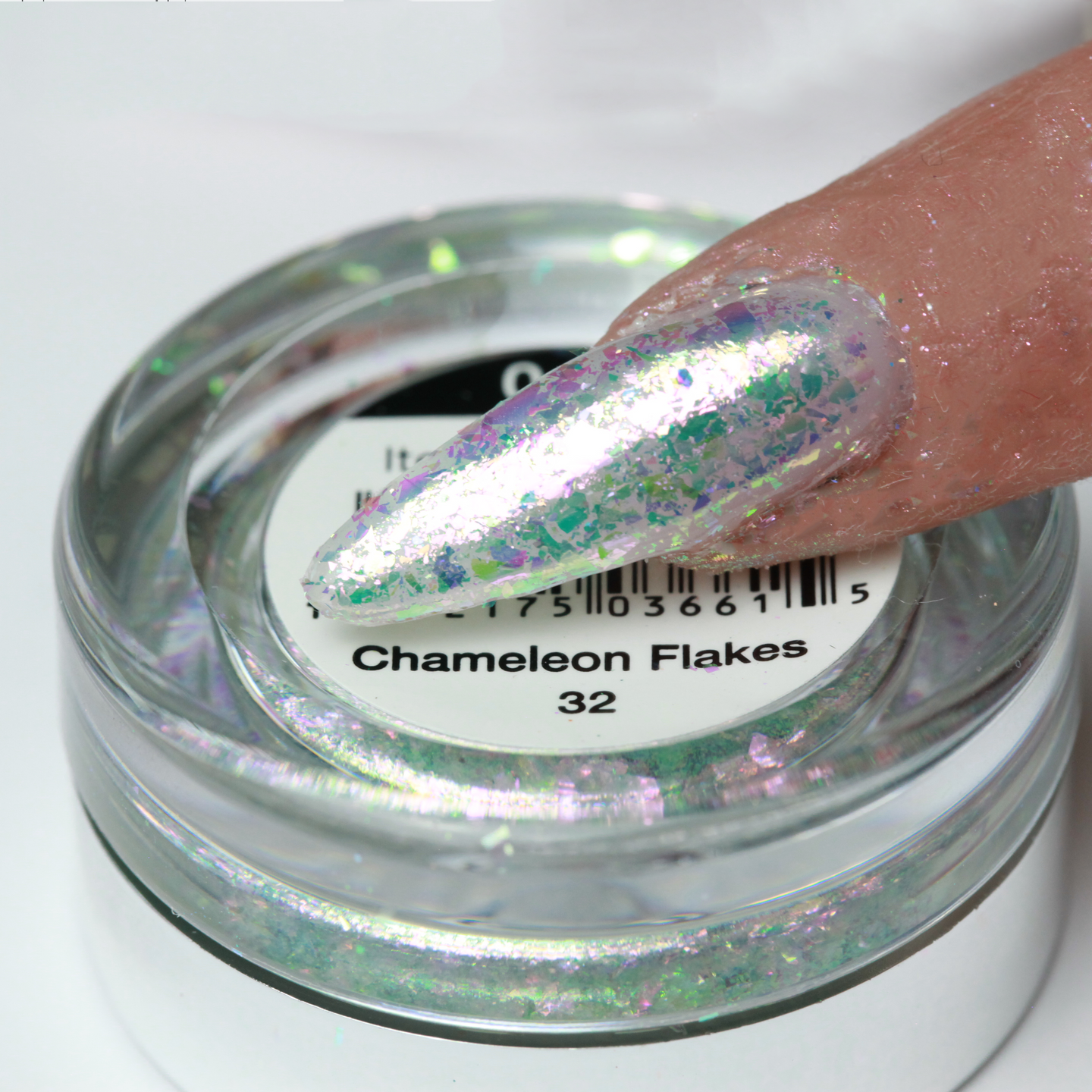 With our Chameleon Flakes, you can easily elevate your nail art game. Whether you're preparing for a special occasion or simply want to pamper yourself, these flakes provide a stunning accent that is sure to turn heads and spark conversations.