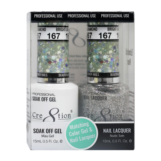 Cre8tion Matching Color Gel & Nail Lacquer 167 Bright Like Diamond