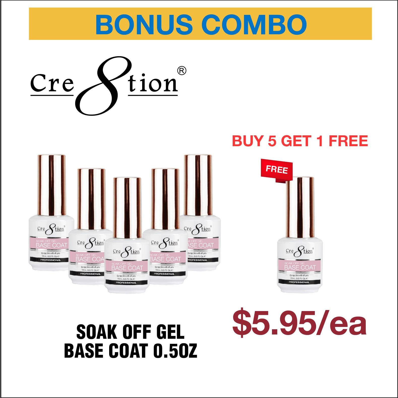 Cre8tion Soak Off Gel Base Coat 0.5oz - Buy 5 Get 1 Free