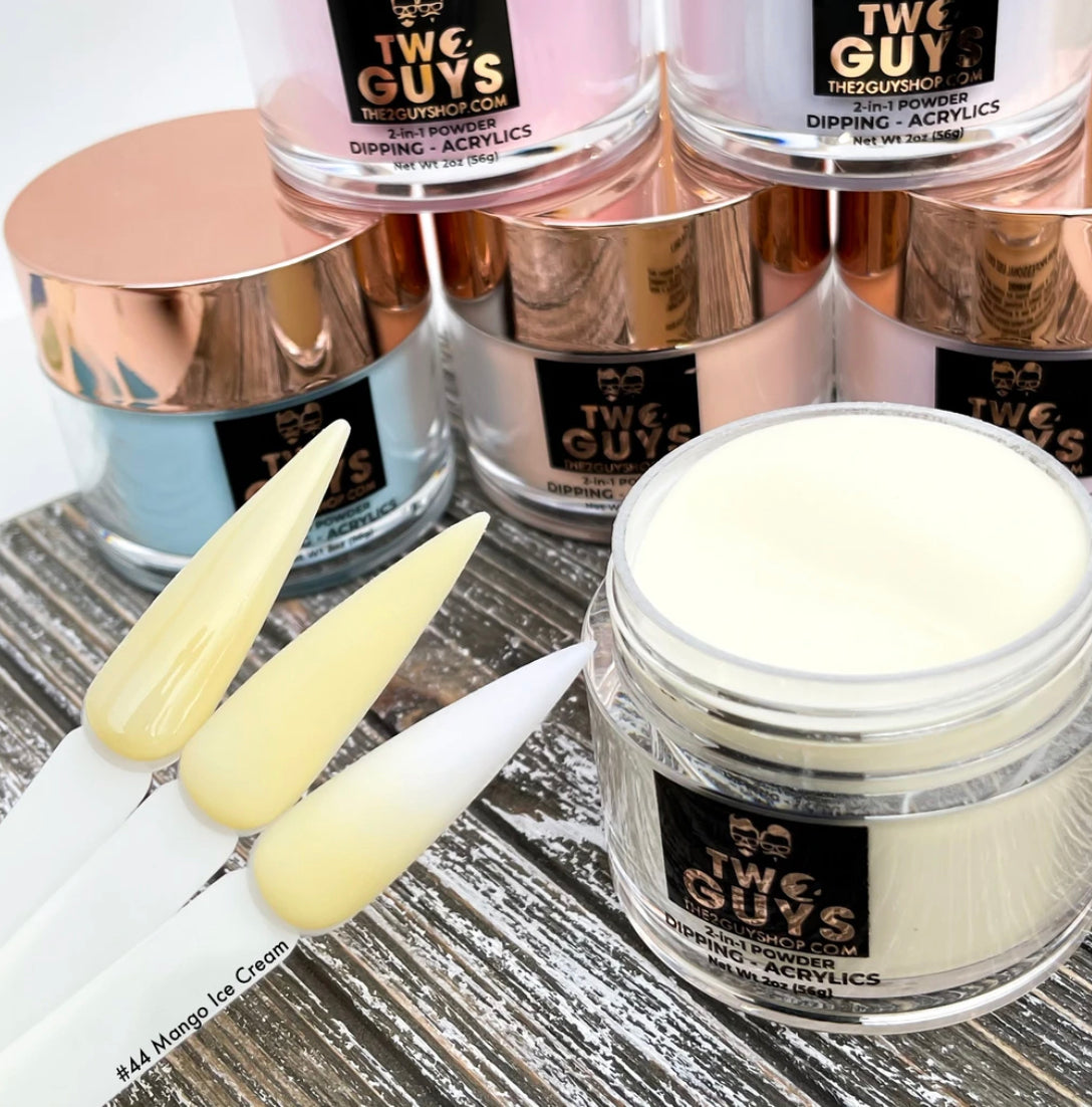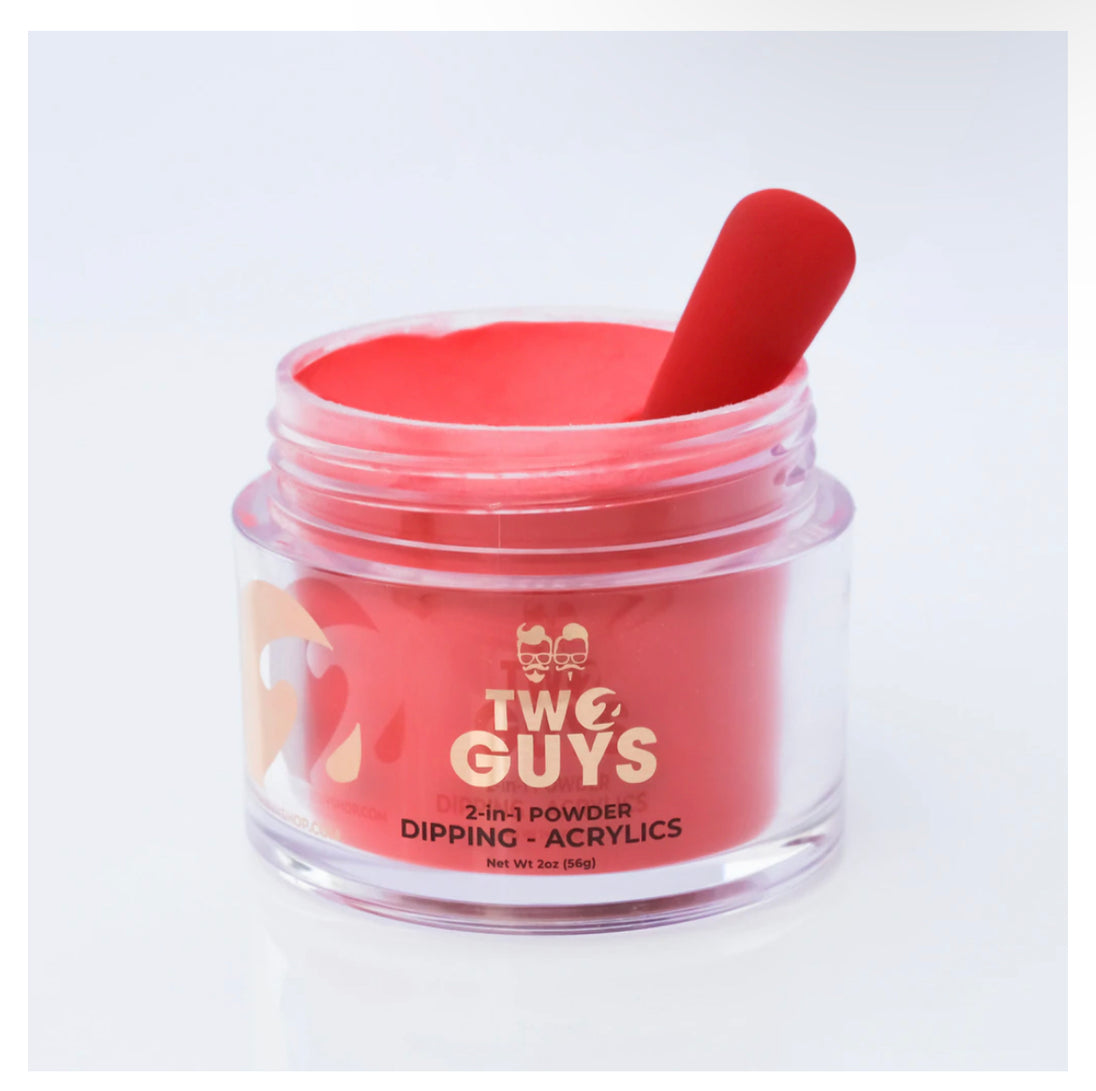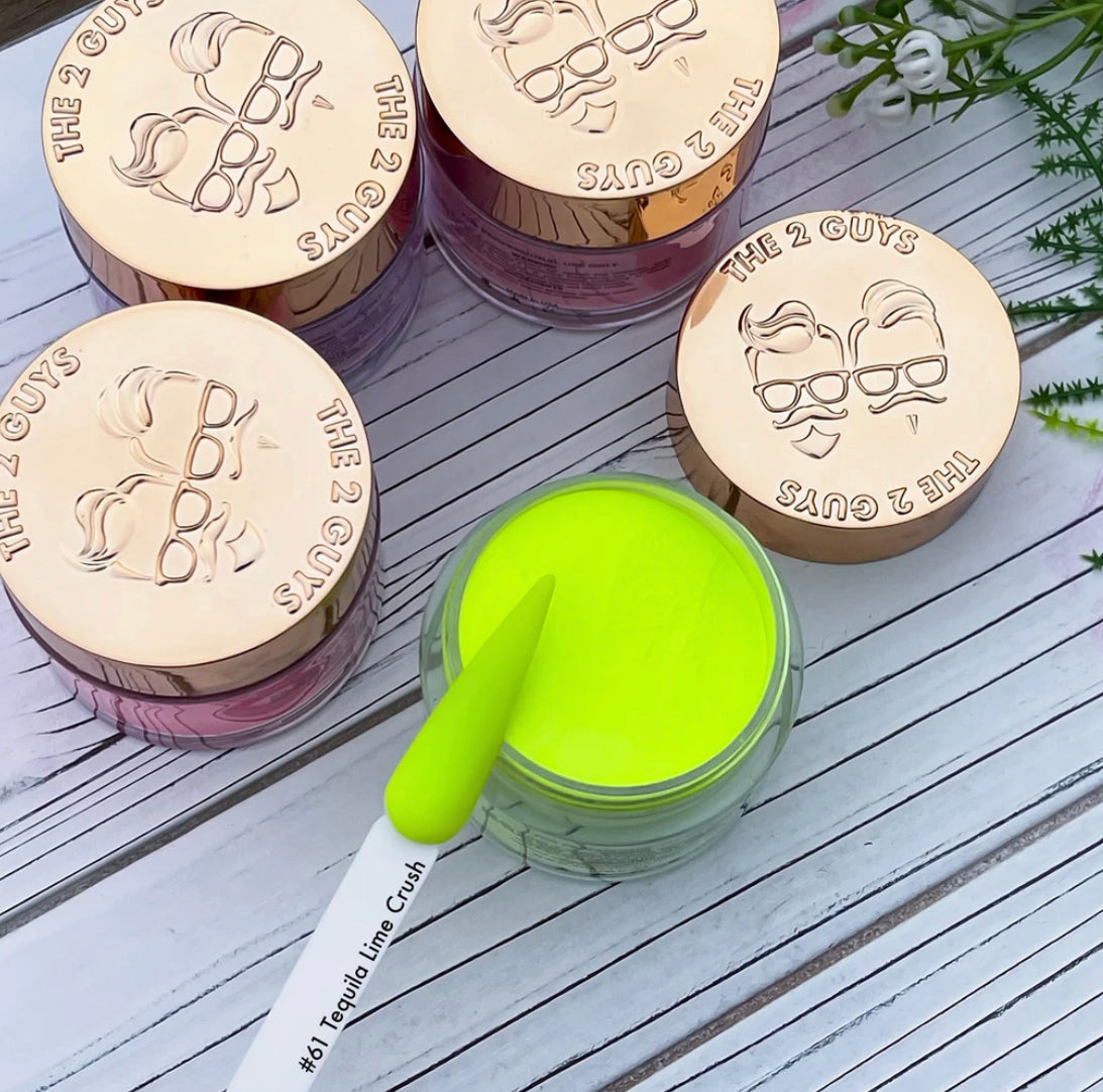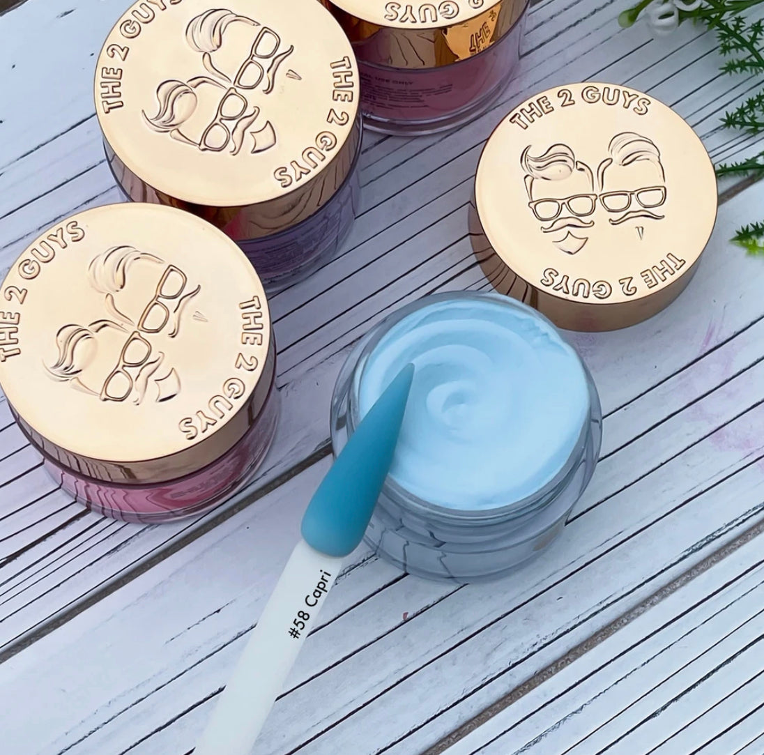 Our 2Guys 2in1 Acrylic Powder System is developed to be used in both dipping and sculpting methods. It’s designed to create vibrant colors and strong adhesive. Our acrylic’s medium setting time and fine texture provide great workability to achieve an even-toned color, bubble free and smooth surface.