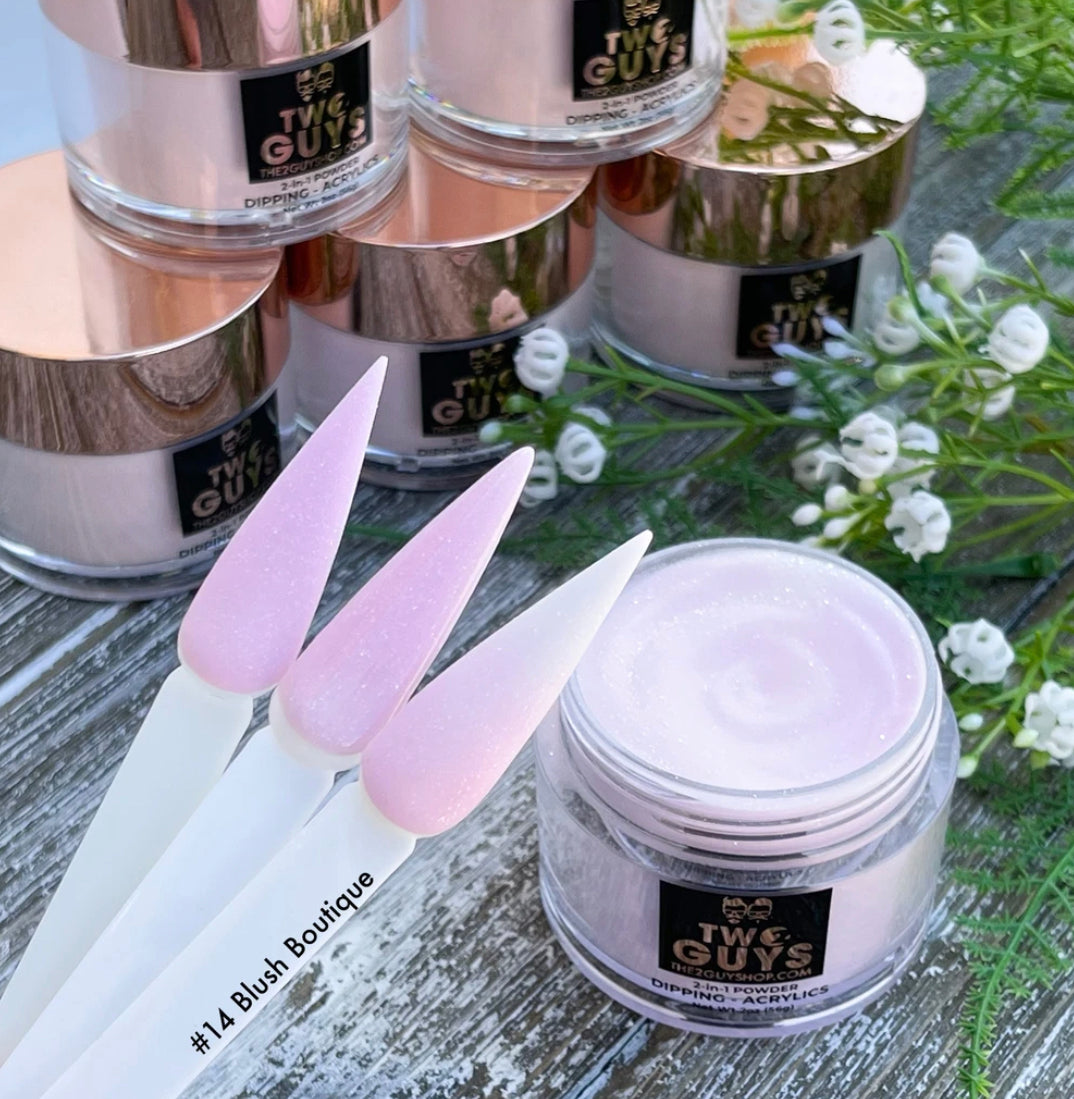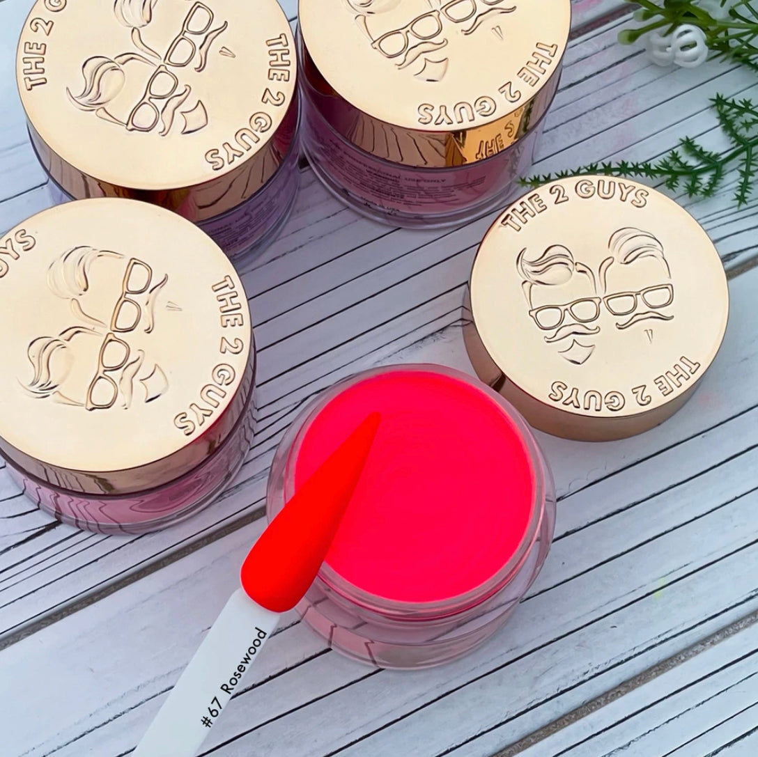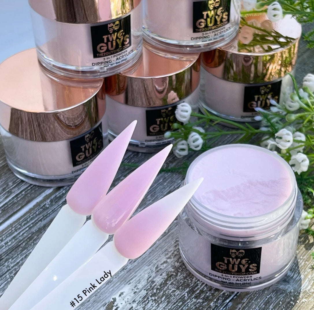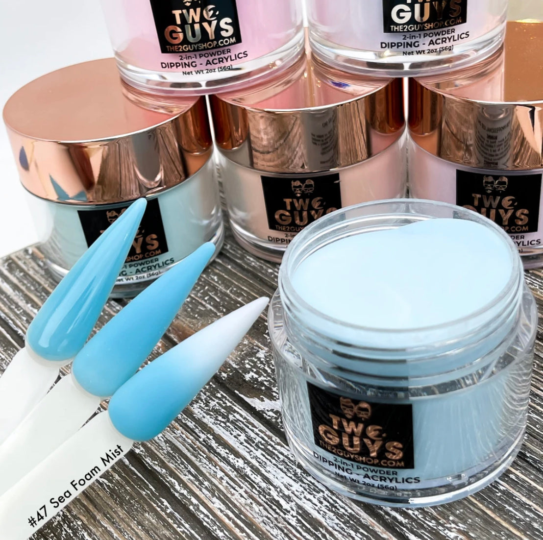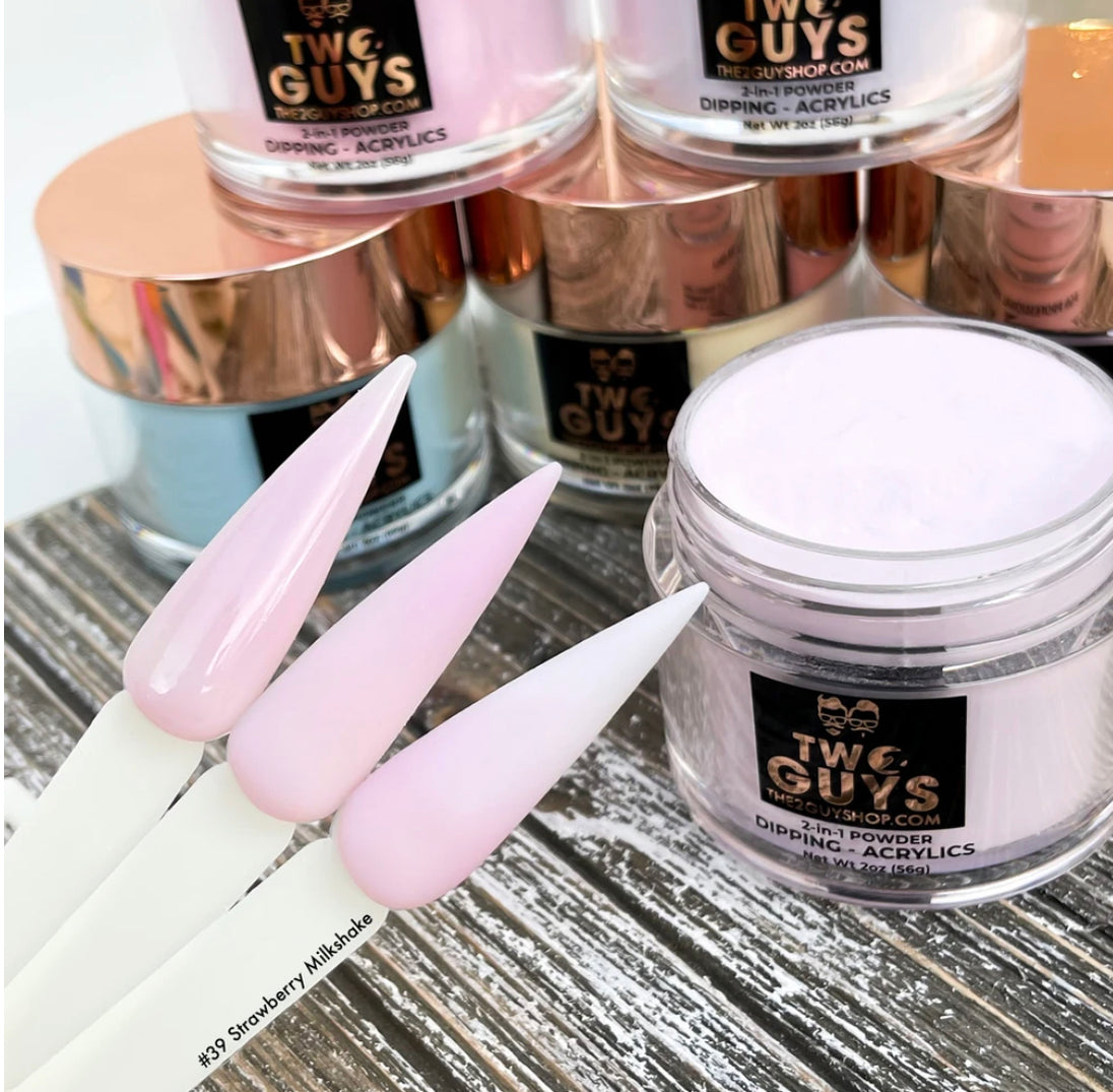 Our 2Guys 2in1 Acrylic Powder System is developed to be used in both dipping and sculpting methods. It’s designed to create vibrant colors and strong adhesive. Our acrylic’s medium setting time and fine texture provide great workability to achieve an even-toned color, bubble free and smooth surface.