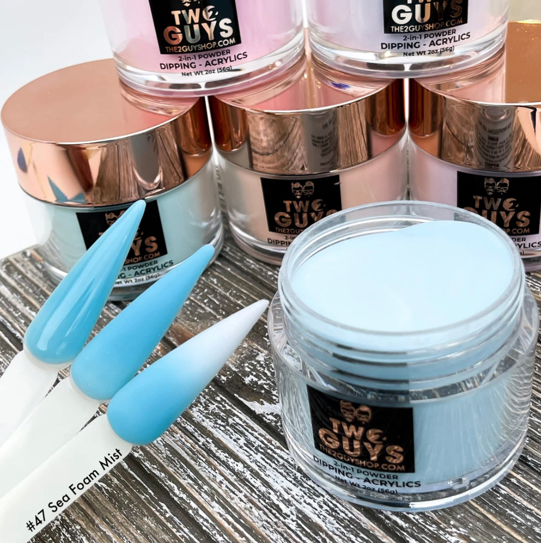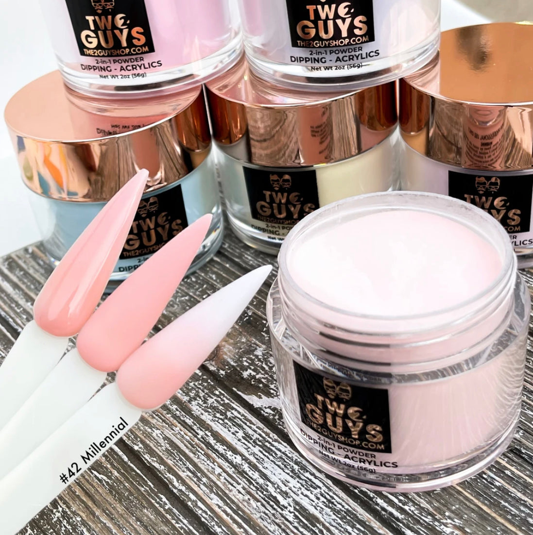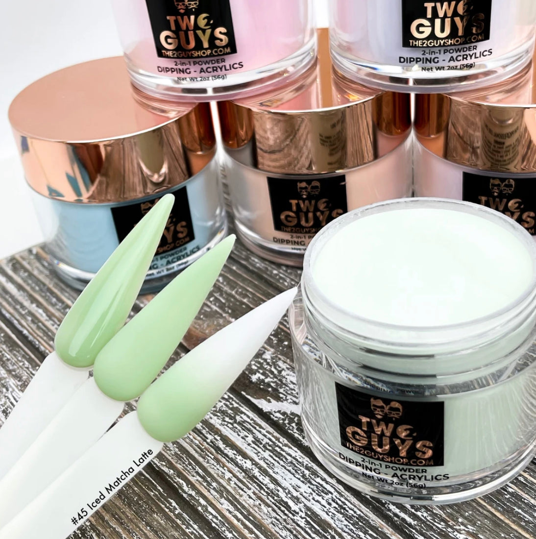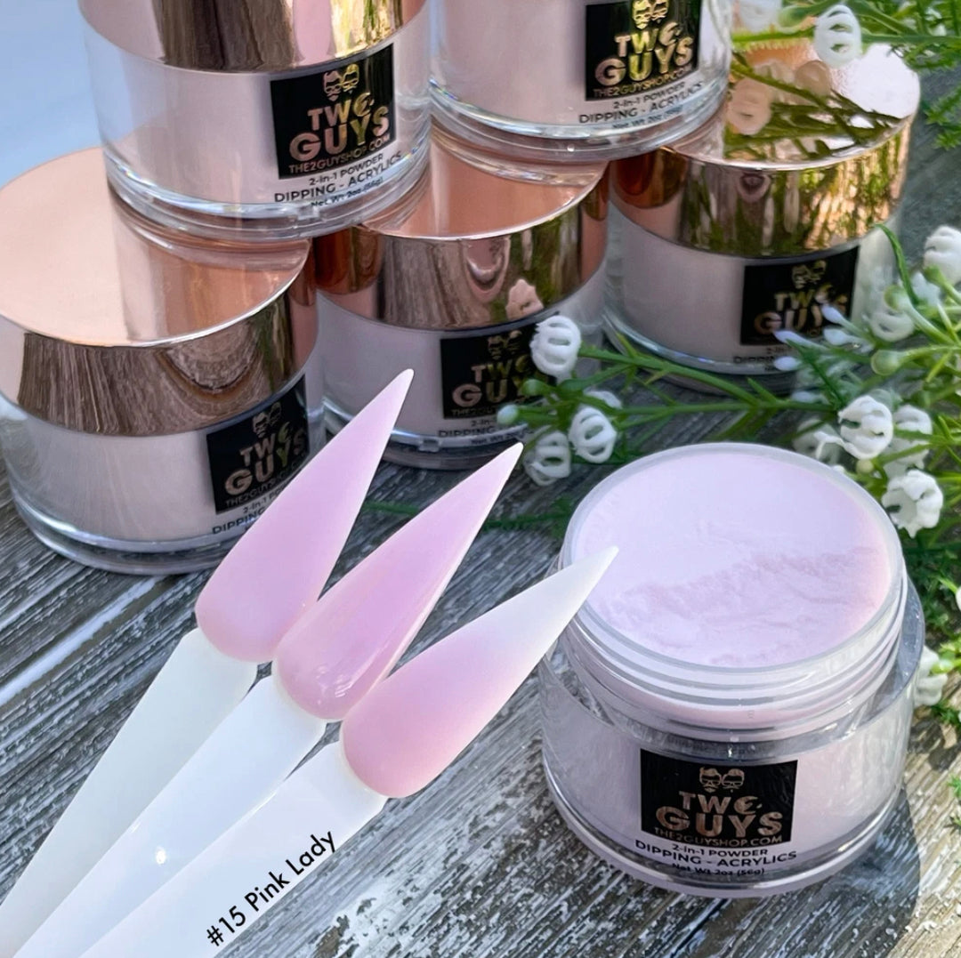 Our 2Guys 2in1 Acrylic Powder System is developed to be used in both dipping and sculpting methods. It’s designed to create vibrant colors and strong adhesive. Our acrylic’s medium setting time and fine texture provide great workability to achieve an even-toned color, bubble free and smooth surface.