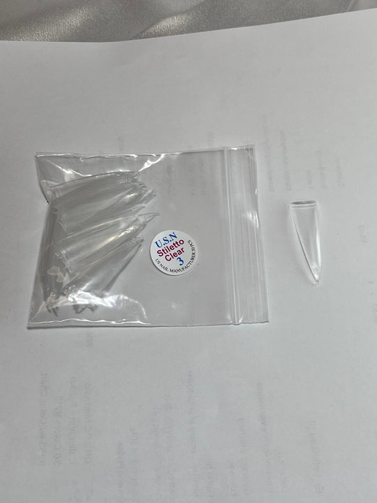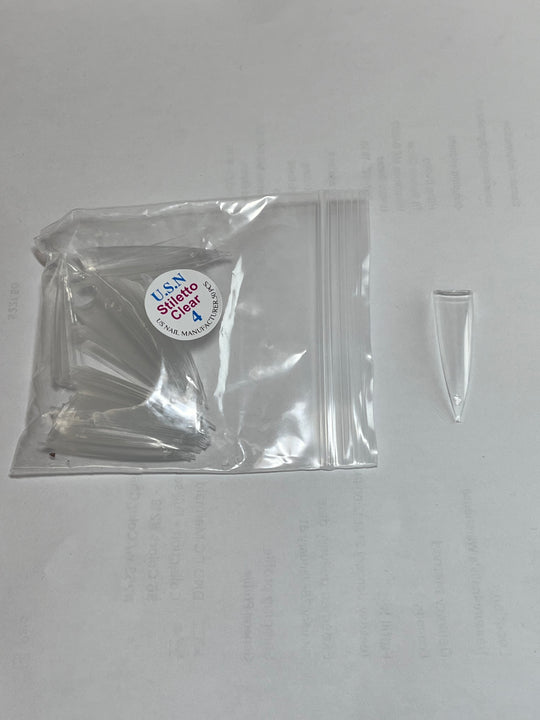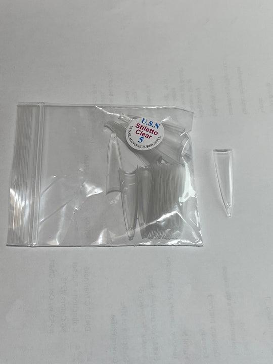 Sale price $0.50Regular price $0.60USN Stiletto Tip Clear - Bag of 50 PRODUCT INFO *Varied Sizes: offers 11 different sizes from 0-10, so they're convenient to choose the most suitable size that fits your every finger. *Simple Operation: a case full cover... -