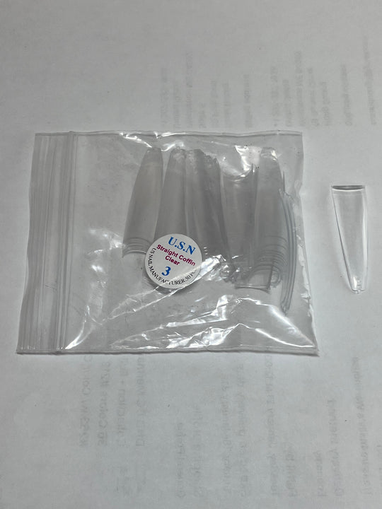 Sale price $0.50Regular price $0.60USN Straight Coffin Tip Clear - Bag of 50 PRODUCT INFO *Varied Sizes: offers 11 different sizes from 0-10, so they're convenient to choose the most suitable size that fits your every finger. *Simple Operation: a case full... -