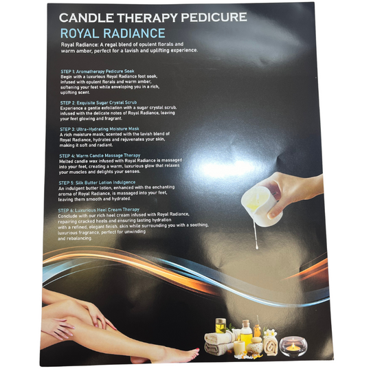 Regular price From $4.25Mademoiselle - 10 in 1 Candle Pedicure Spa Kit - Royal Radiance Description Royal Radiance Candle Pedicure Spa 10in1 Each Kit Includes: Pedi Salt2. Sugar Scrub3. Moisture Mask4. Candle Therapy Massage5. Butter Lotion6. Heel Cream Treatment7.... -