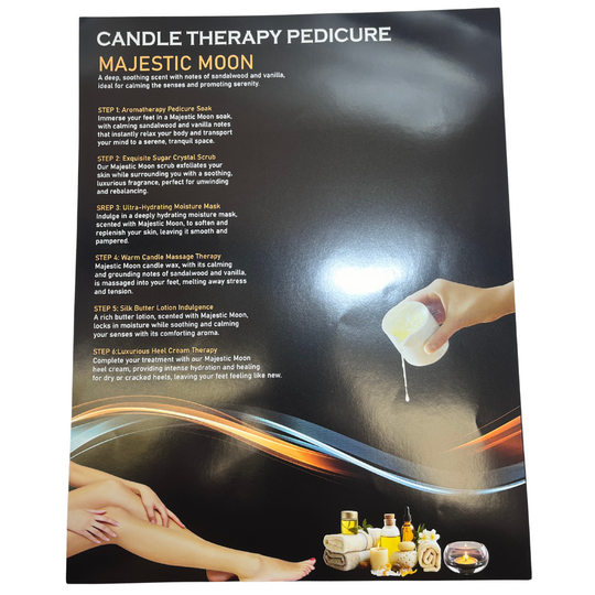 Regular price $240.00Mademoiselle - 10 in 1 Candle Pedicure Spa Kit - Majestic Moon Majestic Moon Candle Pedicure Spa 10in1 Each Kit Includes: Pedi Salt2. Sugar Scrub3. Moisture Mask4. Candle Therapy Massage5. Butter Lotion6. Heel Cream Treatment7.... -