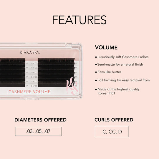 Sale price $12.95Regular price $14.99Introducing the Kiara Sky Volume Cashmere Lashes, the pinnacle of lash artistry. Designed exclusively for lash professionals like you, these lash extensions are crafted in diameters 0.03, 0.05, and 0.07, making them the go-to choice for... -