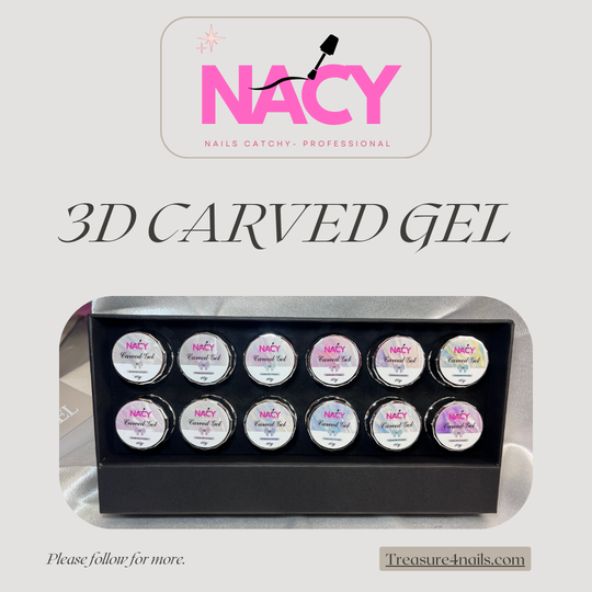 Regular price $60.00NACY 3D CARVED GEL 10g Features : It made of healthy, environmental, friendly, no poisonous, pungent chemical materials.It is quick drying with any UV lamp.This nail gel polish is easy to apply and soak off.Allow you... -
