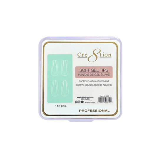 No reviewsRegular price $5.75Cre8tion Medium Length Assortment Shape Gel Tip Trial Box 112 pcs per box - Applied with Cre8tion Soft Tips Extend Adhesive Gel, can provide 4+ weeks of beautiful nail extensions.- Made of soft gel- Can be quickly soaked... -