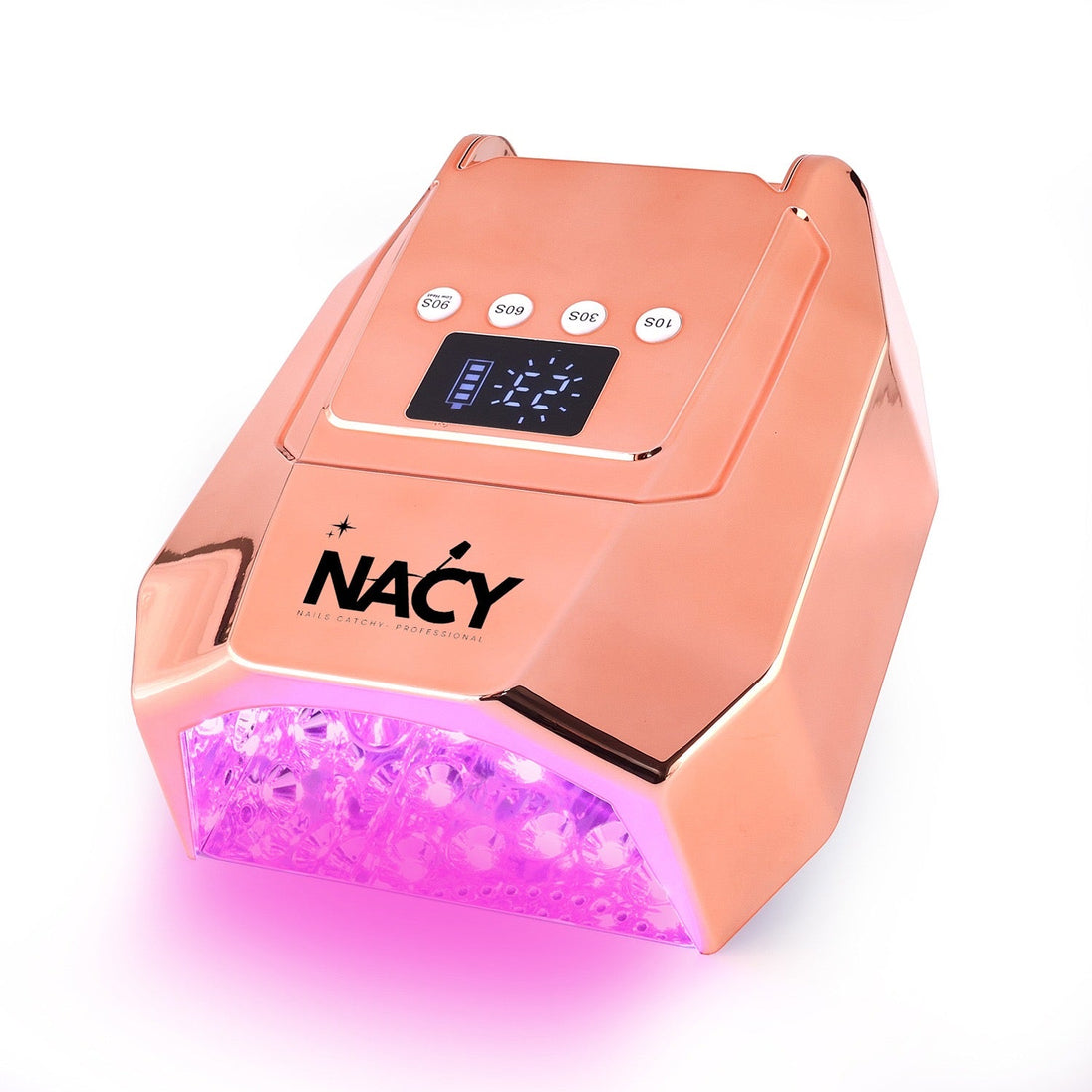 The 98W Cordless Pro Cure LED Lamp is an advanced device designed for professional nail technicians and beauty enthusiasts at home. With a powerful 98W output, this lamp delivers fast and even curing for all types of gel nails, ensuring long-lasting durability and a perfect glossy finish. Its cordless design, powered by a long-lasting rechargeable battery, offers flexible mobility without the hassle of cables. Available in trendy colors such as Gradient Purple, Metallic Rose Gold, and Rose Gold, it features cutting-edge LED technology for a professional and luxurious experience. Ideal for salons or personal use, this lamp accommodates all nail and toenail sizes.